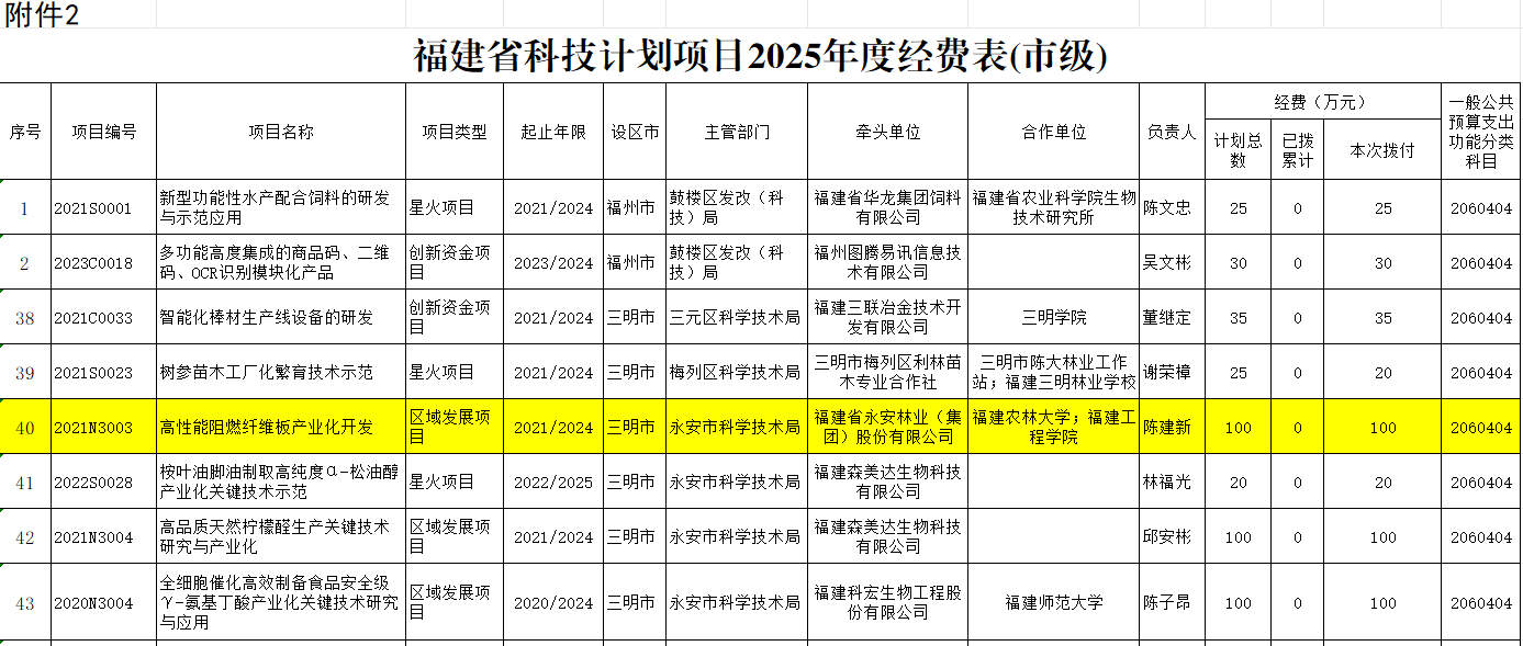 克日,,,,,,,,福建省财务厅、福建省科学手艺厅团结下发《关于下达2025年省科技妄想项目年度经费(市级)的通知》(闽财教〔2025〕10号),,,,,,,,球速体育:从赛场到掌心的每一秒林业申报的“高性能阻燃纤维板工业化开发”项目获得省级财务资金支持。。。。。。。该资金的到位将有力推动球速体育:从赛场到掌心的每一秒林业在高性能阻燃纤维板领域的工业化历程,,,,,,,,提升产品市场竞争力。。。。。。。