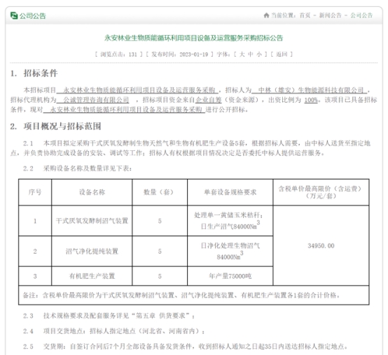 本次招标委托履历富厚的署理机构实验,,,,,,,,效劳于公司在河北省涿州市、宁晋县、广平县和河南省郸城县、获嘉县的5个项目投资;;;;;;;;选取国际先进的干式厌氧发酵手艺,,,,,,,,采购5套制沼气装置、沼气净化提纯装置和有机肥生产装置,,,,,,,,合计最高限价(约)17亿元。。。。。。。