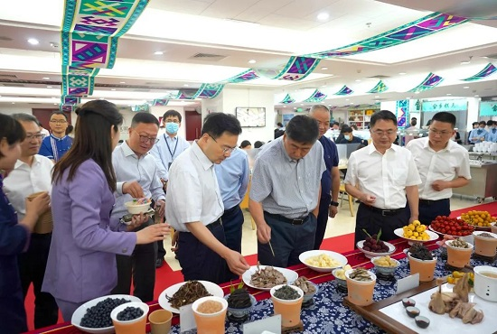 会见后,,,,,由中林商务效劳公司协办的“‘景宁600’ 走进中林”主题运动在中林集团食堂举行。。。。。集团公司向导单忠立、张炳南、王迎财与干部职工配合品鉴“景宁600”农产品、金奖惠明茶、畲家十大碗等畲乡美食,,,,,感受畲族山歌和畲族非遗文化的奇异魅力。。。。。